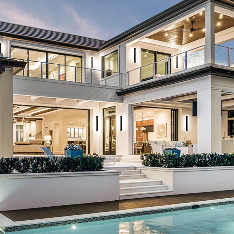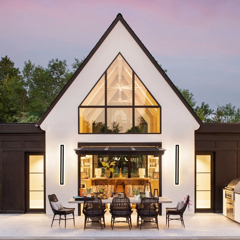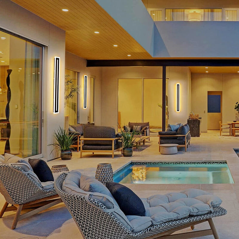 This large outdoor wall light embodies a sleek, modern spirit with its clean, linear structure and minimalist design. Perfectly suited for contemporary exteriors, it adds both function and elegance to your space.